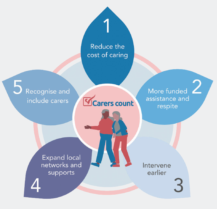 The Carers Victoria platform sets out five point plan to address key pressure points experienced by carers: